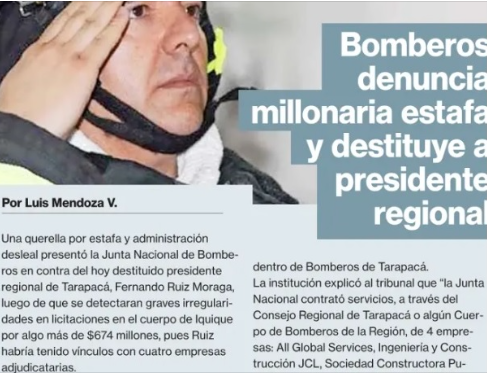 Por irregularidades en licitaciones Junta Nacional de Bomberos destituye a presidente regional de los voluntarios. La querella por “estafa y administración desleal” está en el 8° Juzgado de Garantía de Santiago.