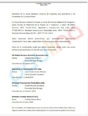 Ruiz habría estado relacionado con cuatro empresas que se adjudicaron proyectos de construcción para bomberos en Tarapacá. Además, se pudo constatar que «9 de 11 adjudicaciones examinadas fueron entregadas a sociedad donde uno de los socios era el expresidente del gremio».