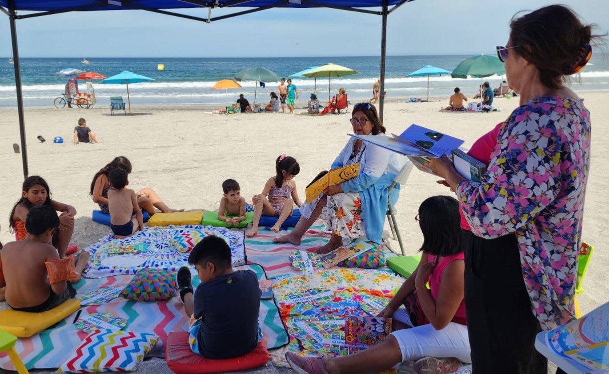 En esta ocasión, los equipos de las bibliotecas públicas N°211 y N°214 se trasladaron hasta la arena, lugar donde llevaron algunos de los ejemplares que albergan en sus dependencias, con la finalidad de habilitar un punto de lectura gratuito para todas las edades.