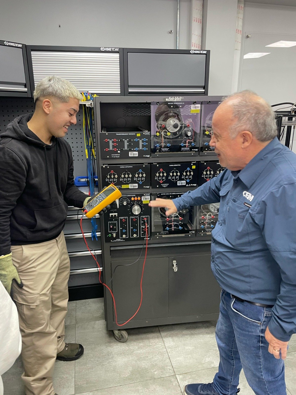 Durante las sesiones prácticas, los estudiantes trabajaron con tecnología Lab-Volt, una herramienta reconocida por su enfoque modular y realista que permite aplicar conocimientos teóricos en equipos industriales reales. Esta tecnología fomenta el pensamiento crítico, la resolución de problemas y el dominio de sistemas eléctricos complejos, preparando a los futuros técnicos para enfrentar con confianza los desafíos del entorno laboral.