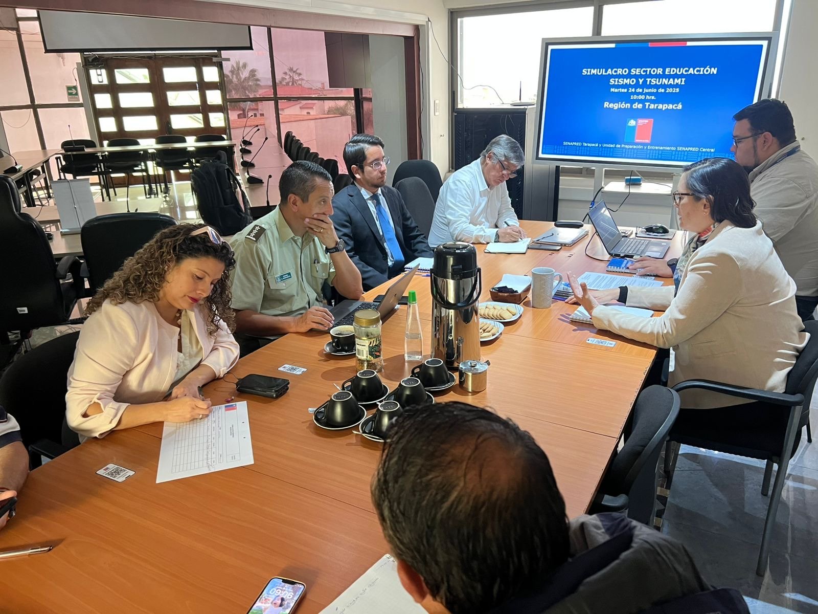 El delegado presidencial regional (s) de Tarapacá, Pablo Valenzuela, participó una reunión de coordinación en Senapred con miras al simulacro de sismo y tsunami que se realizará el 24 de junio, a las 10 de la mañana, en todos los niveles del sector educacional.