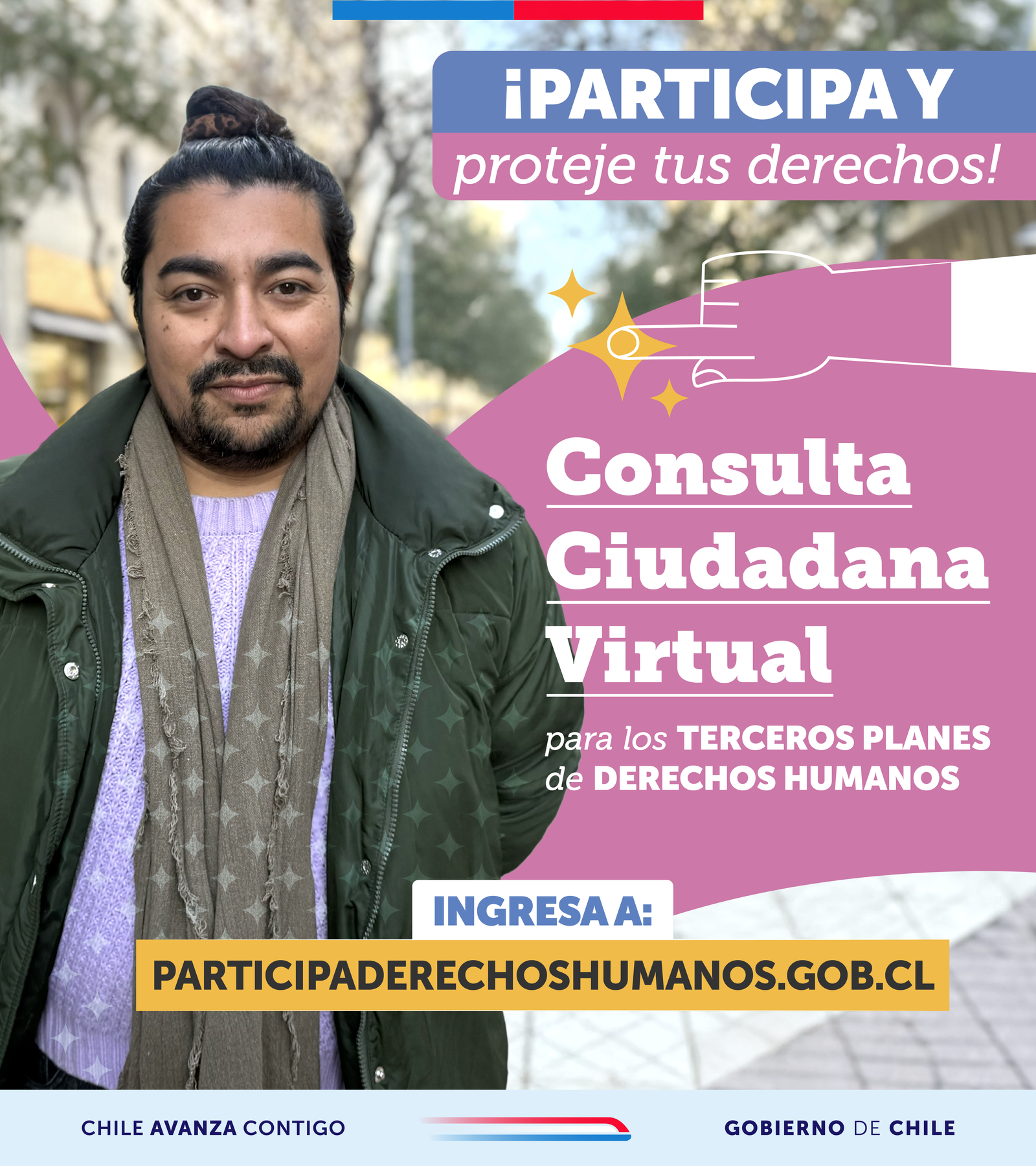 La consulta es un espacio para construir políticas públicas con más democracia, más participación y más derechos. Porque tu voz importa, súmate en participaderechoshumanos.gob.cl.