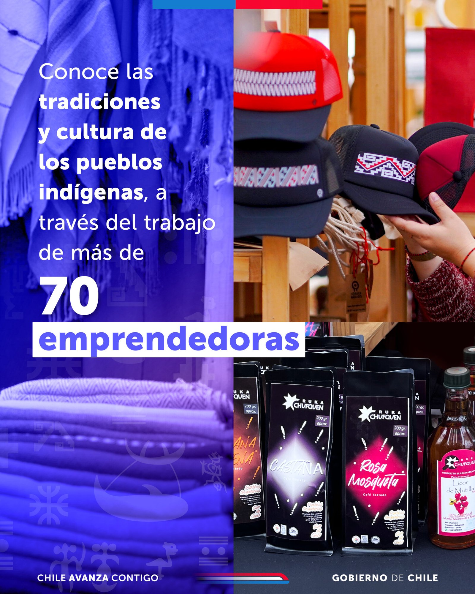 En solo tres años, la Expo Feria de Emprendedoras Indígenas ha beneficiado directamente a cerca de 200 mujeres de las 16 regiones del país, consolidándose como un espacio clave de intercambio comercial y cultural que visibiliza la diversidad y riqueza del patrimonio indígena. En este encuentro, las emprendedoras presentan productos de artesanía, textil, orfebrería, medicina tradicional, gastronomía y, desde 2022, también del rubro del turismo indígena.