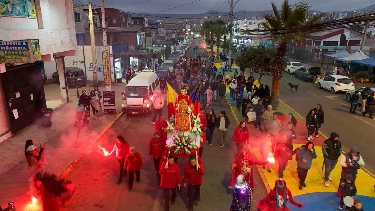 Por último la jornada que se inició con una procesión desde el frontis de la municipalidad de Alto Hospicio hasta donde convergen las avenidas Los Álamos con Ramón Pérez Opazo, se prolongó con muestras de danzas de organizaciones religiosas, bandas de bronce y la presentación de los “Diablos Sueltos”, que dieron realce a la festividad.