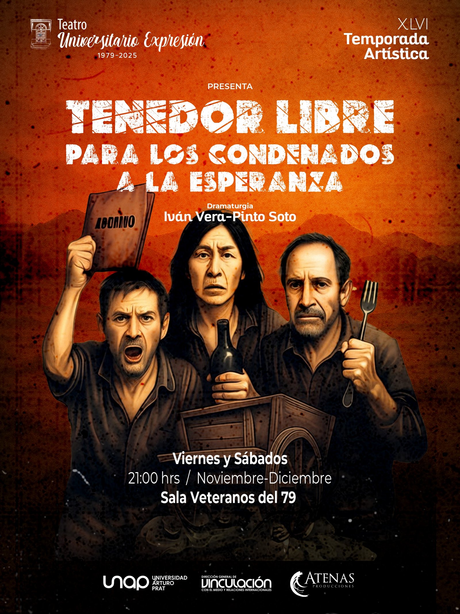 A fines de octubre, el Teatro Universitario Expresión de la Universidad Arturo Prat presentará “Tenedor libre para los condenados a la esperanza”, obra de mi autoría, en el marco de su 46ª temporada. No es solo un estreno: es una acción de reivindicación cultural, un recordatorio de que necesitamos el arte que despierta, incomoda y obliga a mirar lo que muchos prefieren ignorar. Como dijo José Saramago: “El arte existe porque la vida no basta”.
