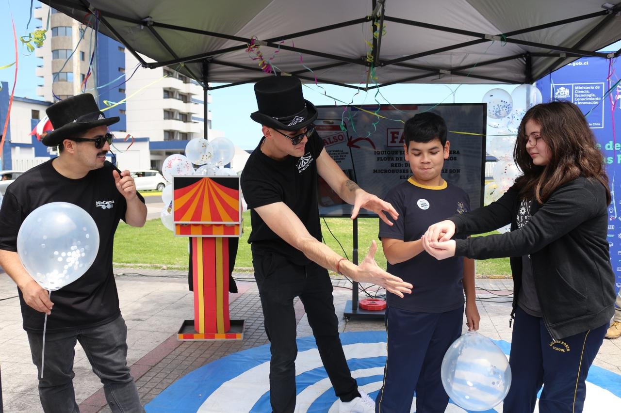 Como parte de la jornada inaugural, se realizaron intervenciones urbanas en Plaza 21 de Mayo (Iquique), Terminal AgroHospicio y Mall Zofri, con dinámicas interactivas a cargo de la Compañía Circo Iquique, que invitaron a familias y estudiantes a reflexionar sobre las fake news y la información en redes sociales. El hito central tuvo lugar en la Plaza 21 de Mayo, con la participación del Delegado Presidencial Regional de Tarapacá, la Seremi de Educación, autoridades de la Universidad Arturo Prat, INACAP y del Programa Explora Tarapacá.
