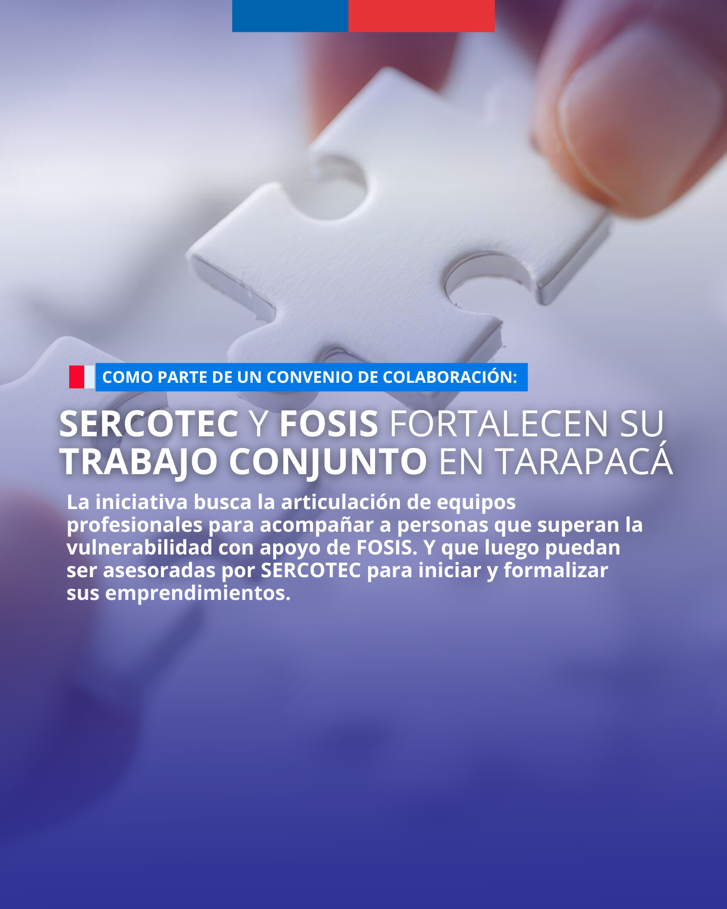 Para acompañar a personas que superan la vulnerabilidad con el Fondo Solidario de Inversión Social (FOSIS) y que luego puedan iniciar y formalizar un negocio con apoyo del Servicio de Cooperación Técnica (SERCOTEC), profesionales de ambos servicios públicos realizaron una jornada de coordinación y planificación en Iquique, en el marco del convenio de colaboración vigente, para potenciar el trabajo conjunto entre ambas instituciones.