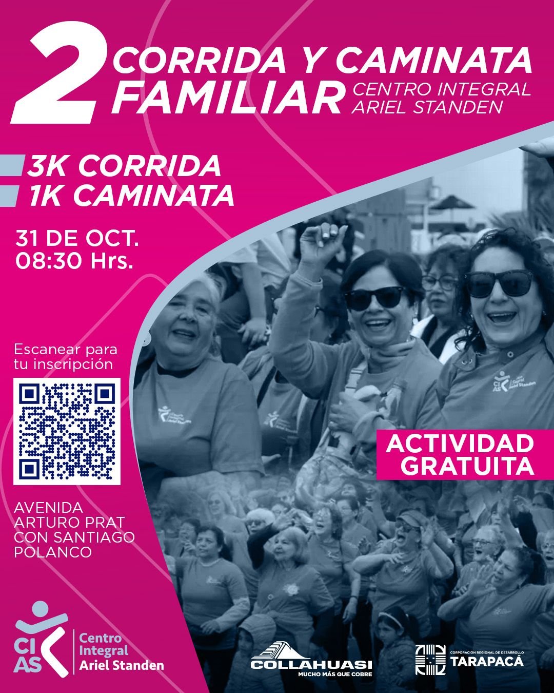 Con el objetivo de promover la vida saludable y conmemorar su segundo aniversario al servicio de la comunidad, el Centro Integral Ariel Standen (CIAS) realizará este viernes 31 de octubre, la 2ª Corrida y Caminata Familiar, actividad gratuita que espera reunir a cientos de vecinos y vecinas en la Avenida Arturo Prat con Santiago Polanco, a partir de las 08:30 horas.