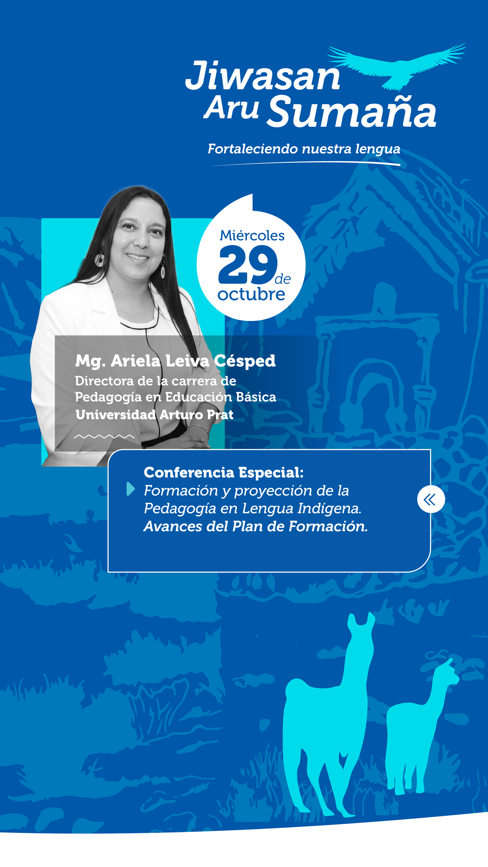 – La Universidad Arturo Prat (UNAP), junto a Conadi Tarapacá y ONU Mujeres, invita al Seminario de Difusión de la Pedagogía en Lengua Indígena “Jiwasan Aru Sumaña” (Fortaleciendo nuestra lengua). El evento se realizará los miércoles 29 y jueves 30 de octubre en el Salón Oscar Hanh de la UNAP, sede Iquique.