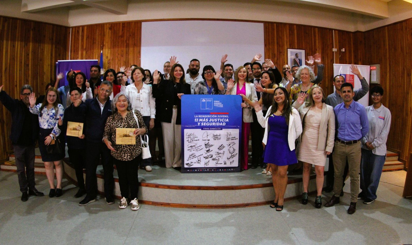 Al término de la ceremonia, y como parte del compromiso por la reinserción juvenil; autoridades, empresarios e invitados especiales firmaron simbólicamente un documento, asumiendo con ello un pacto por la reinserción de las y los jóvenes de Tarapacá, para integrarlos al mundo laboral y a la sociedad, con oportunidades que les permitan contribuir a la región.