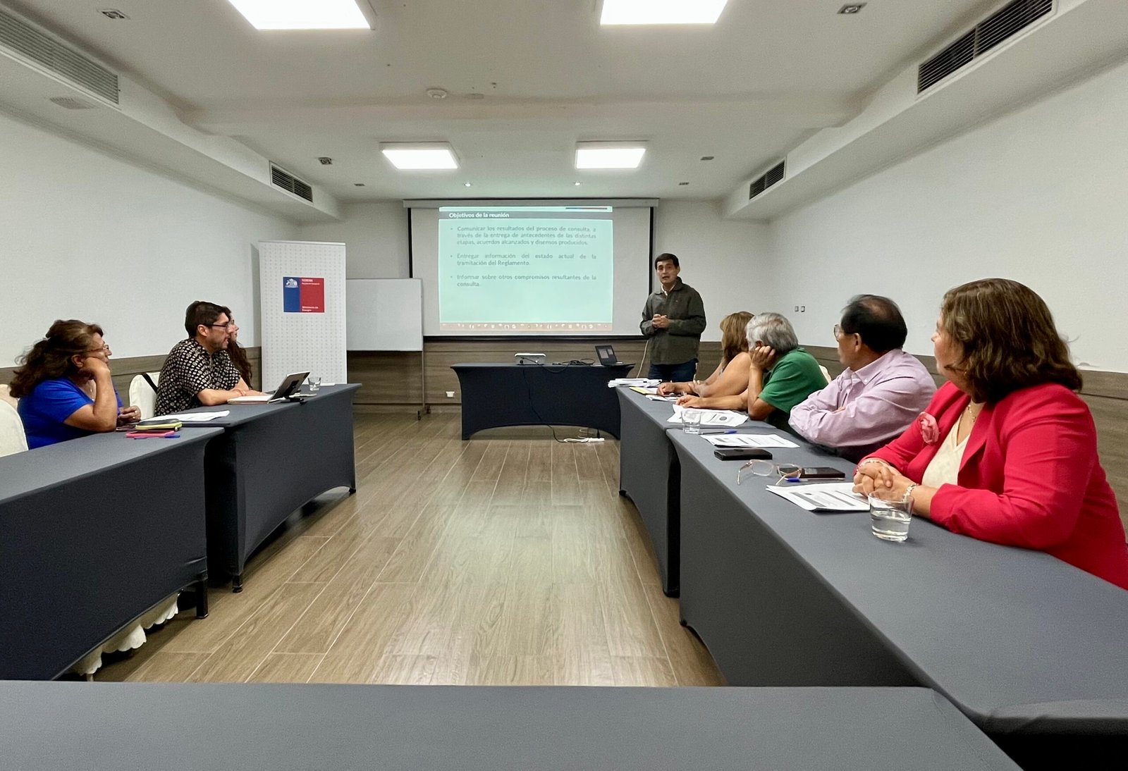Durante la jornada de difusión de resultados, realizada en la ciudad de Iquique, se presentaron los principales acuerdos y desacuerdos alcanzados tanto en las instancias regionales como en las reuniones nacionales, estas últimas efectuadas en Osorno, en noviembre de 2024, y en Santiago, en marzo de 2025. Asimismo, se informó a las y los asistentes sobre el estado actual de tramitación del Reglamento.