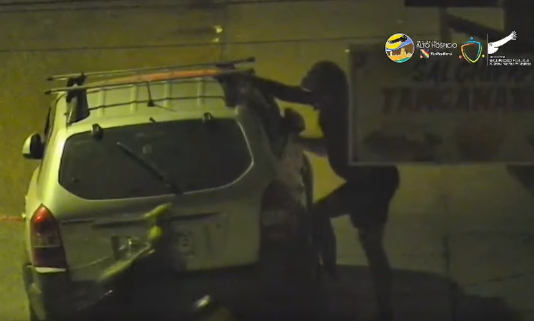 El hecho fue detectado durante el monitoreo permanente del sistema de cámaras municipales, donde se observó a dos individuos fracturando el vidrio trasero del costado derecho de un vehículo estacionado, activándose de inmediato los protocolos de coordinación con personal policial.