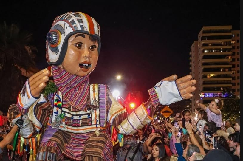 7 de enero, 2026.- La Costanera de Iquique fue el escenario del estreno regional del pasacalle El gigante y los niños Wara Wara, una propuesta gratuita y colectiva de la compañía La Patogallina, bajo la dirección artística de Martín Erazo. Este espectáculo forma parte del Festival Internacional Tarapacá a Mil, presentado por Fundación Teatro a Mil y Teck Quebrada Blanca, que busca transformar los espacios públicos de la región en un escenario vivo y acercar las artes escénicas a la comunidad.