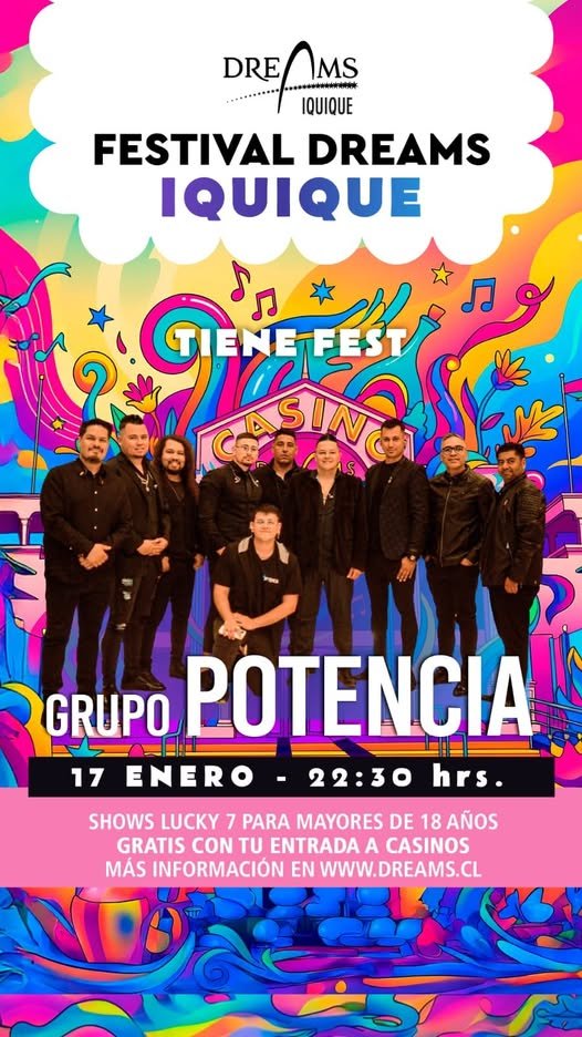 “Cuando Estamos Juntos”, “Mi Gran Amor”, “No Te Marches”, “Eres Tú”, y “Vete”, que son solo una parte de lo que promete cantar en vivo Luciano Lan, el vocalista de Potencia. “Será una fiesta de pricipio a fin. Estamos felices de regresar a una cadena de casinos tan importante como es Dreams”, comentó el artista trasandino.