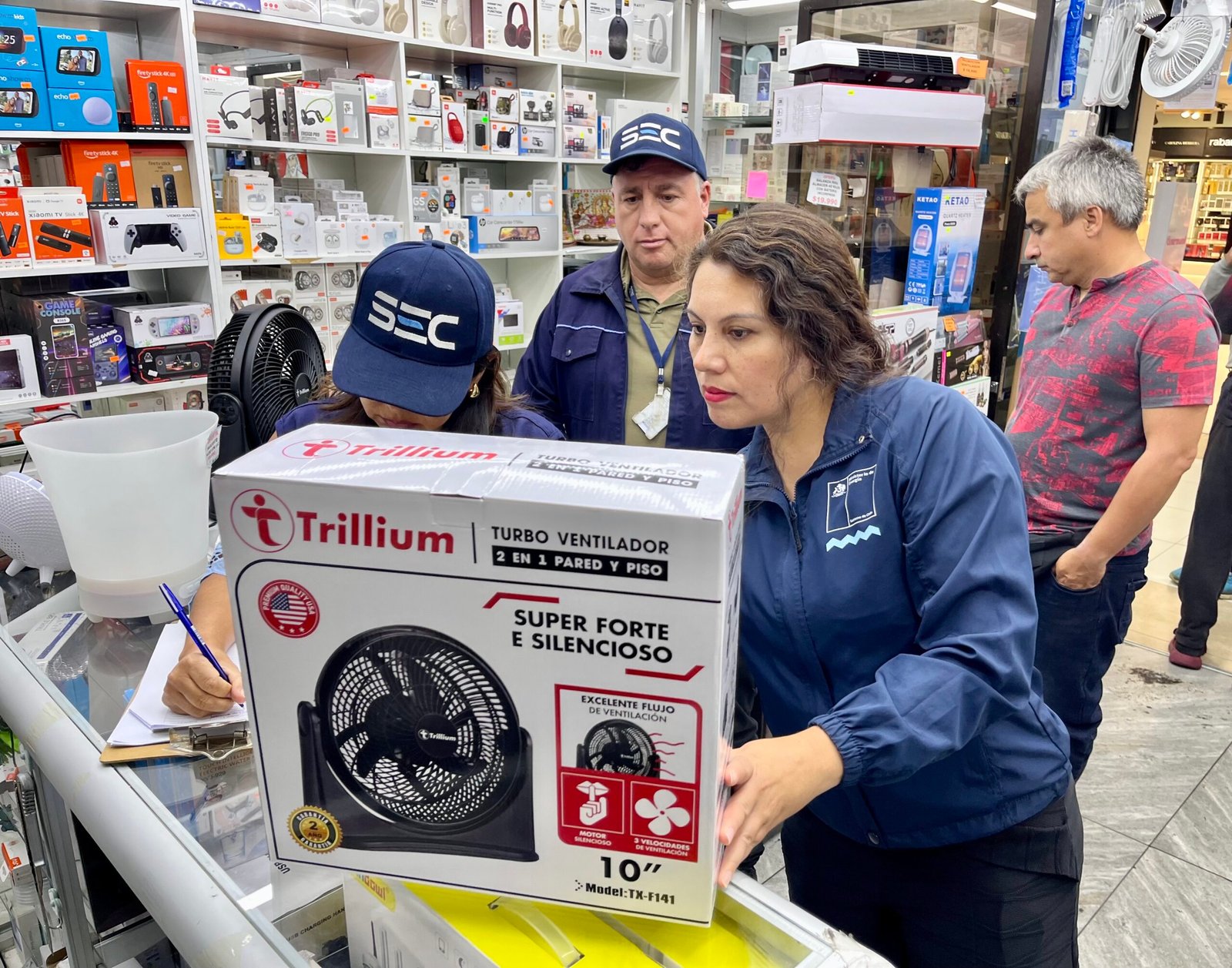 Durante la inspección, la SEC revisó especialmente la presencia del “Sello SEC” en los artefactos eléctricos, que permite identificar productos que se encuentran dentro del sistema de certificación obligatoria, es decir, equipos evaluados conforme a exigencias técnicas y de seguridad vigentes del país.