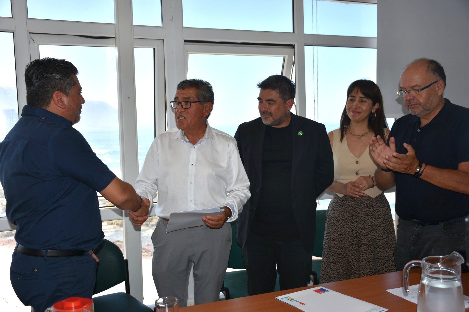 • En ceremonia en Delegación Presidencial, el delegado Pedro Medalla, junto al seremi de MINVU, Diego Rebolledo, realizaron la entrega de la Resolución de Asignación Directa que permitirá financiar la construcción de la futura Casa del Pampino, a través del Programa de Mejoramiento de Vivienda y Barrios DS N°27.