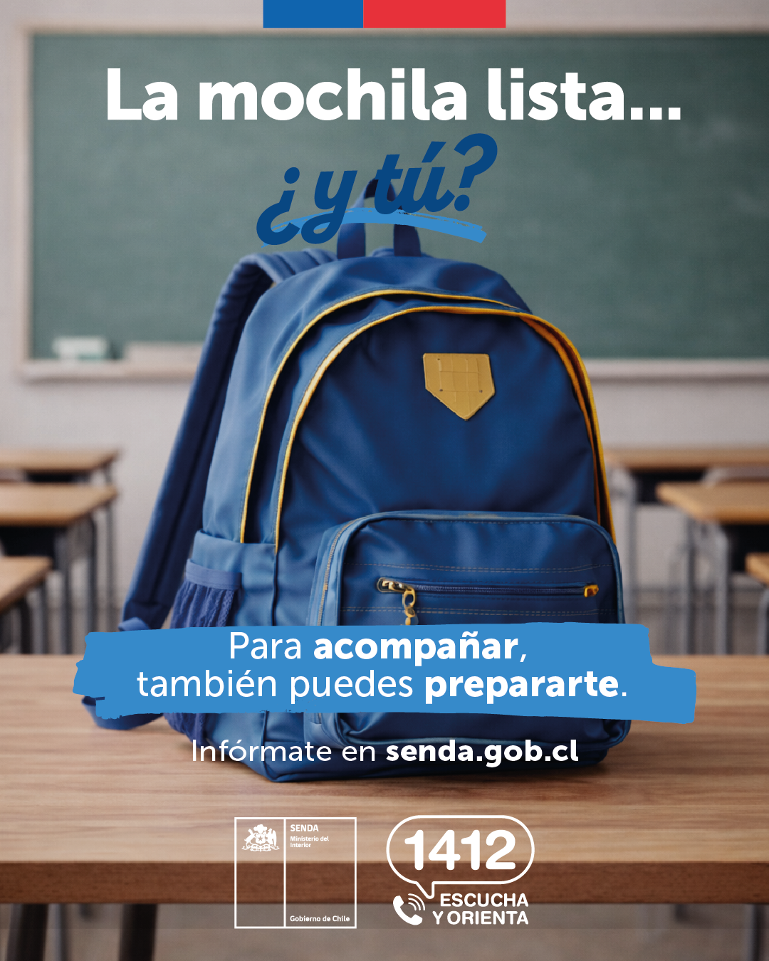 En el marco del inicio del año escolar, SENDA presentó la iniciativa “La mochila lista… ¿y tú?”, que invita a madres, padres y adultos cuidadores a prepararse para acompañar la prevención del consumo de alcohol y otras drogas en niños, niñas y adolescentes.