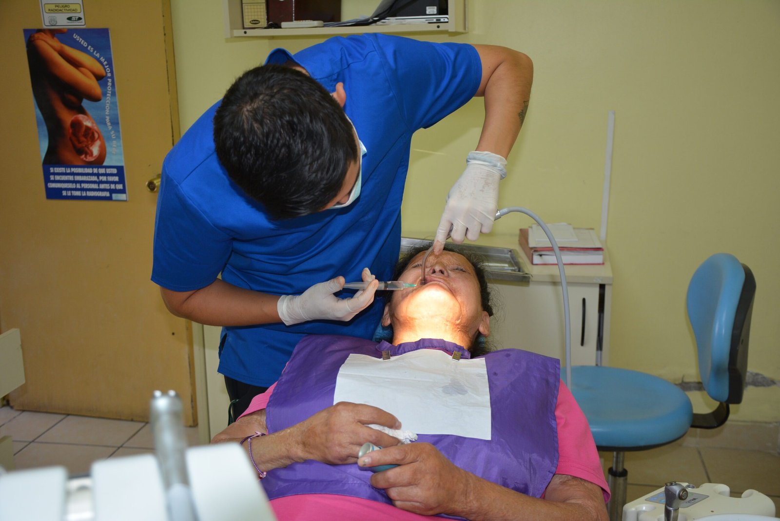 El operativo comenzó con la administración de anestesia local para garantizar que la paciente no experimentara dolor durante la operación. Posteriormente, el facultativo procedió con la remoción de siete restos radiculares y piezas dañadas, una labor crítica dado el riesgo infeccioso que presentaba la paciente.