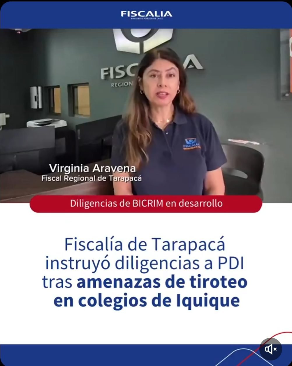Diversas amenazas registradas en establecimientos educacionales de Iquique están siendo investigadas por la Fiscalía Regional de Tarapacá en conjunto con la Policía de Investigaciones, con diligencias actualmente en desarrollo.