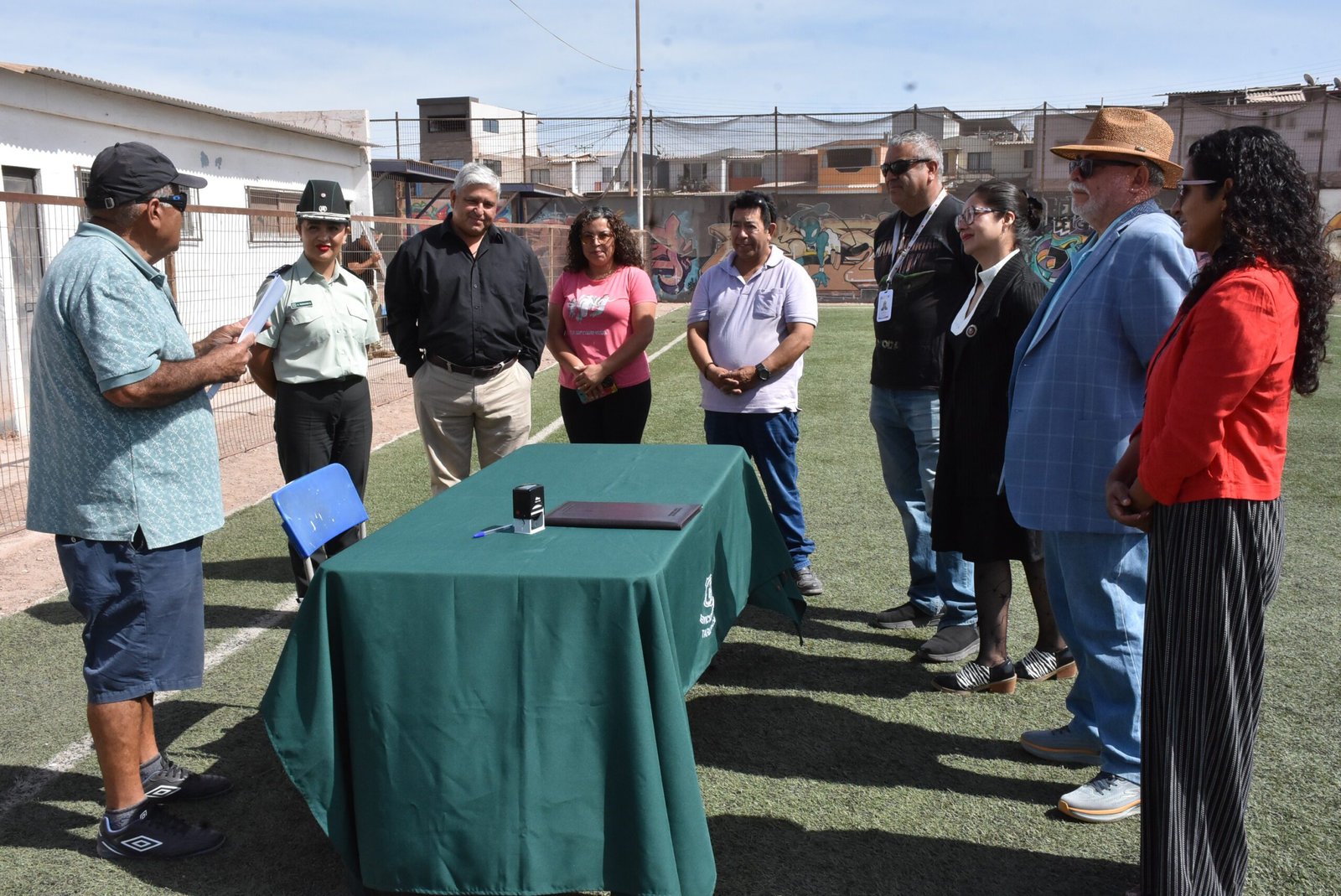 Este acuerdo permitirá que personas condenadas por los tribunales cumplan penas en el medio libre, puedan saldar su deuda con la sociedad mediante la prestación de servicios a la comunidad. De esta manera, los beneficiarios del sistema realizarán labores de mantenimiento y apoyo en las dependencias de la cancha de fútbol ubicada en el sector de La Quebradilla, en la comuna de Alto Hospicio.
