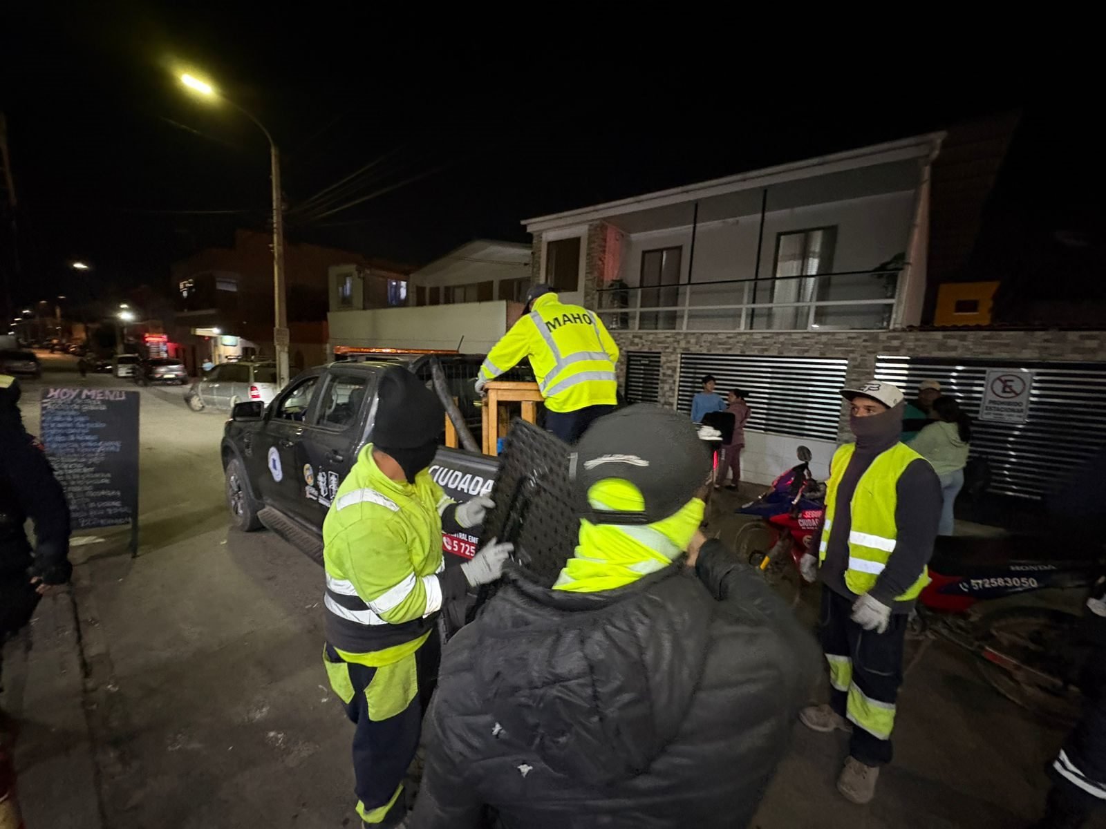 Por su parte, los inspectores municipales y personal de Aseo y Ornato fiscalizaron el uso del espacio público y reforzaron acciones de ordenamiento y limpieza en los sectores intervenidos. En esas acciones cursaron 9 infracciones a ordenanzas municipales; 5 por comercio sin patente; 2 por comercio clandestino de alcohol y 3 por comercio en la vía pública. Además, se retiraron especies asociadas al comercio irregular: 4 sacos con zapatillas, 3 carros de comida y 1 caja con alimentos.